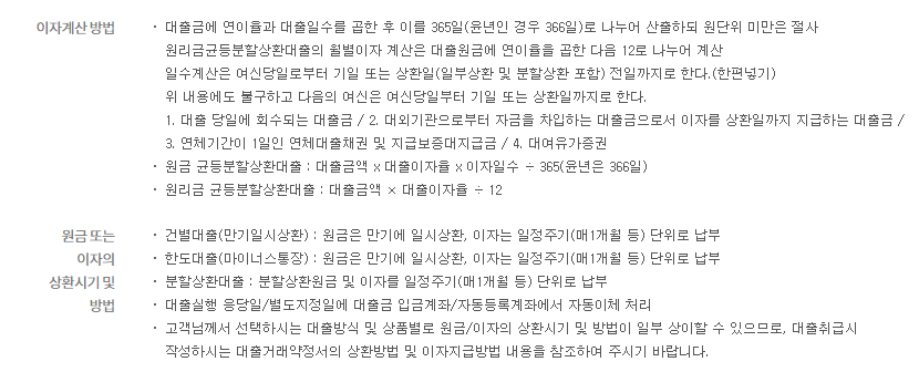 대출기간은 1년으로 만기일시상환입니다. 마이너스통장이기 때문에 매월 사용한 금액만큼의 이자를 납부하셔야하며, 만기일에 원금은 일시상환하셔야합니다. 또한, 대출 기간내에 원금의 얼마를 상환하든, 그에 따른 중도상환해약금이 없는 상품입니다.